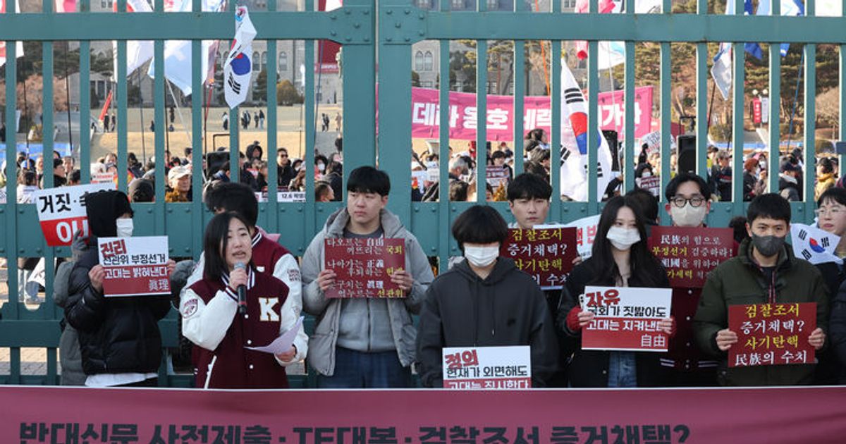 고려대생 탄핵 찬반 시국선언... 확성기·욕설 '아수라...